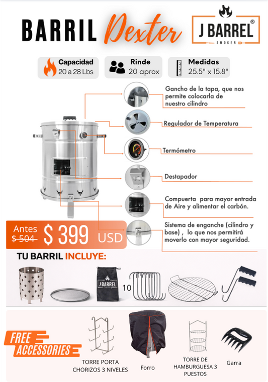 Jbarrel Dexter Smoker (Small: up to 28 lbs)
