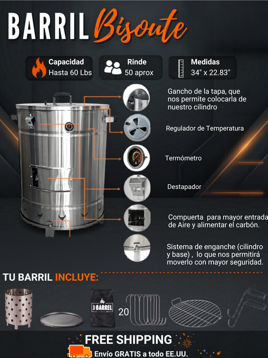 Jbarrel Bisonte Smoker (LARGE: up to 60 lbs)